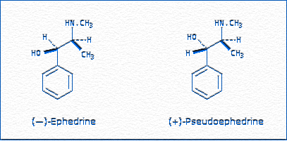 Photochemical: Ephedrine is salt of an alkaloid and is in shining white crystals. Heating ephedrine with hydrochloric acid forms Pseudoephidrine.