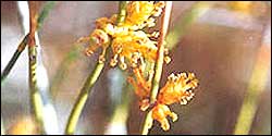It is found on sandy seashores and in temperate climates of both hemispheres. The plant has stamens and pistils on separate flowers--staminate flowers in catkins and a membraneous perianth, pistillate flowers terminal on axillary stalks, within a two-leaved involucre. Fruit has two carpels with a single seed in each and is a succulent cone, branches slender and erect, small leaves, scale-like, articulated and joined at the base into a sheath.